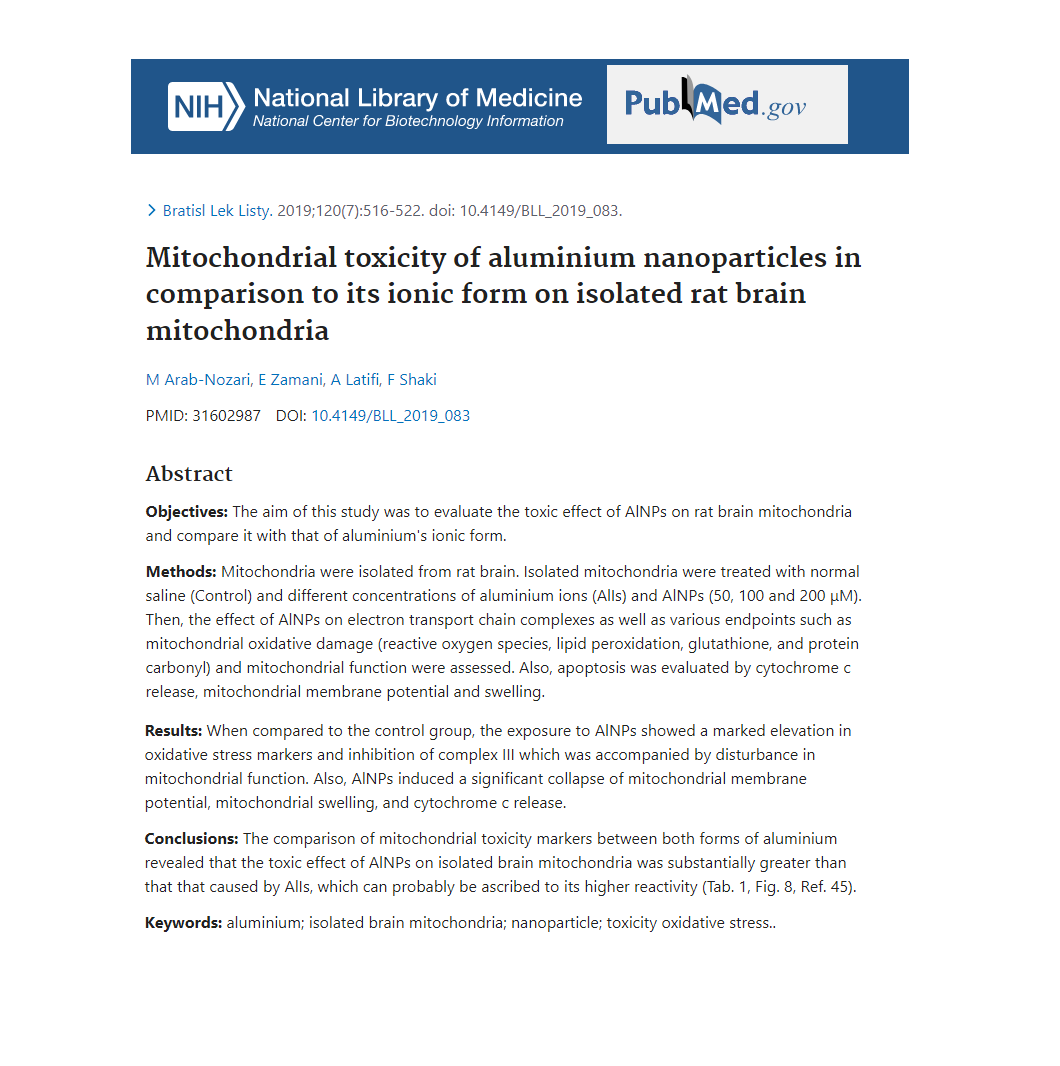 Keywords: aluminium; isolated brain mitochondria; nanoparticle; toxicity oxidative stress..