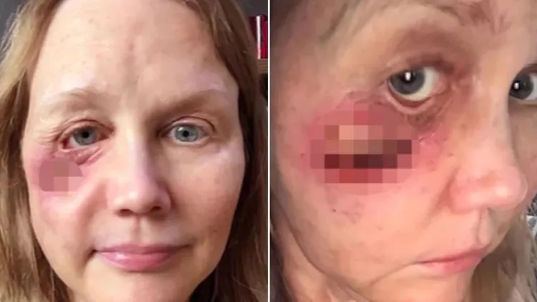 Mulher fica com buraco no rosto após implante dar errado, veja fotos: