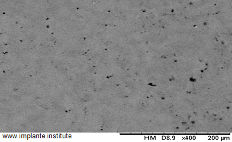 Implante com grande quantidade de impurezas, sendo o carbono (preto) e alumínio (branco) na superfície.
