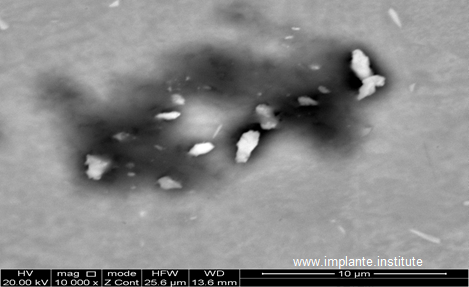 Foram achadas nas amostras a presença dos elementos Níquel (Ni) e Alumínio (Al), o que correspondia a um problema de saúde pública, as empresas foram comunicadas sobre esses problemas e algumas não se interessaram em controlar sua qualidade, deste modo somos um site independente de controle de qualidade em implantes dentários e aqui apresentamos evidências científicas em Microscopia Eletrônica de Varredura (MEV) e Espectroscopia por Energia Dispersiva (EDS).