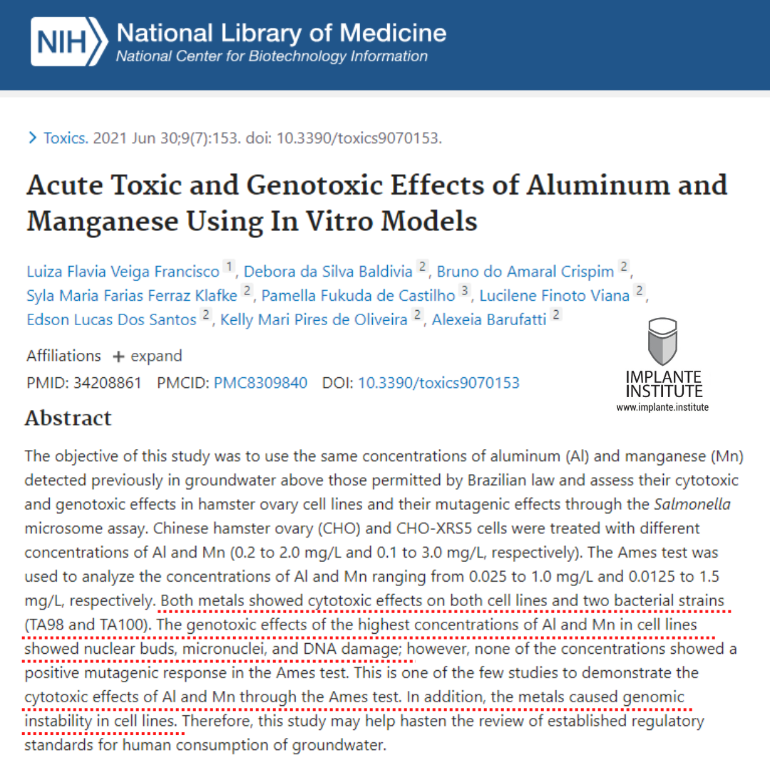 Este é um dos poucos estudos que demonstram os efeitos citotóxicos do Alumínio e do Mn através do teste de Ames. Além disso, os metais causaram instabilidade genômica em linhagens celulares.