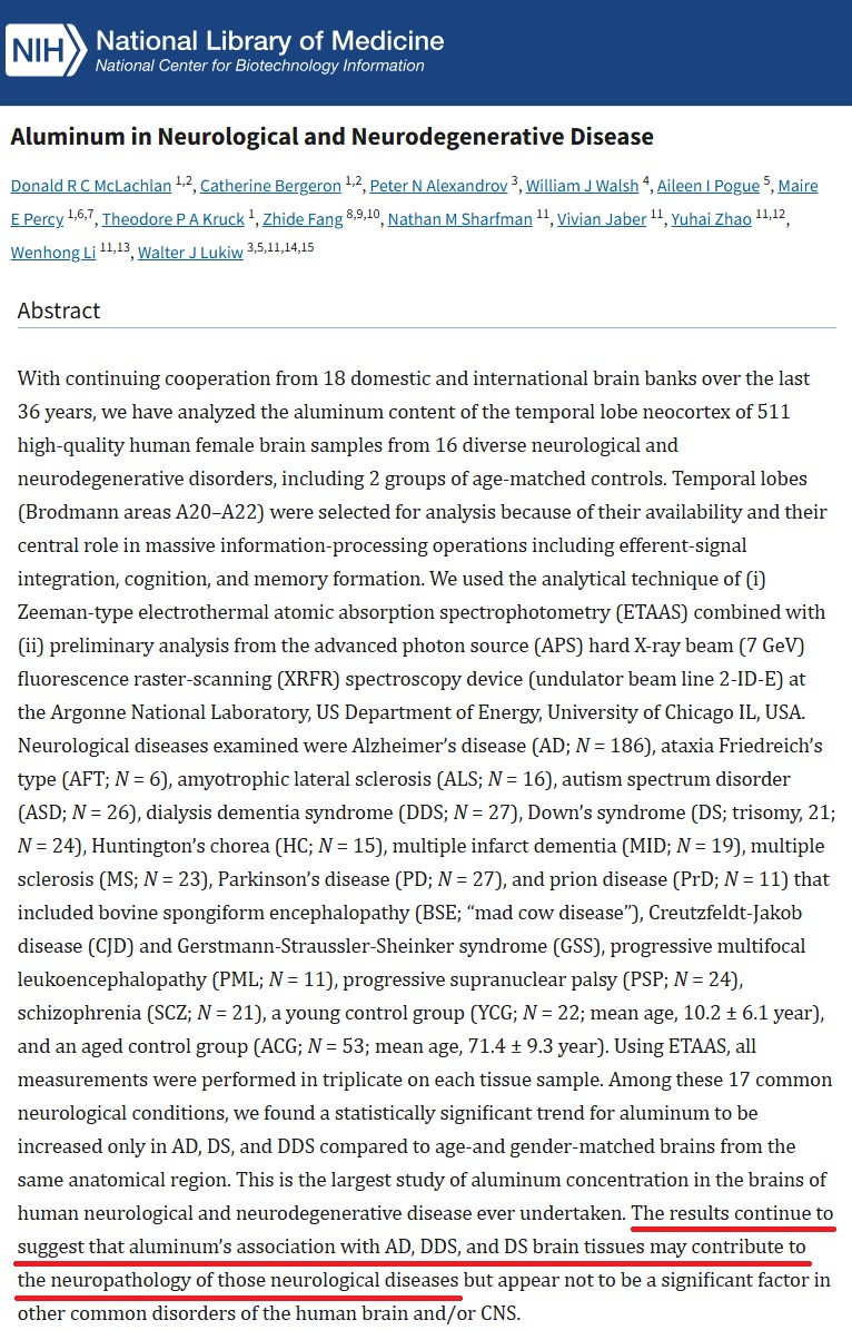 Os resultados continuam sugerindo que a associação do alumínio com a doença de Alzheimer, a síndrome de demência por diálise e os tecidos cerebrais da síndrome de Down podem contribuir para a neuropatologia dessas doenças neurológicas.