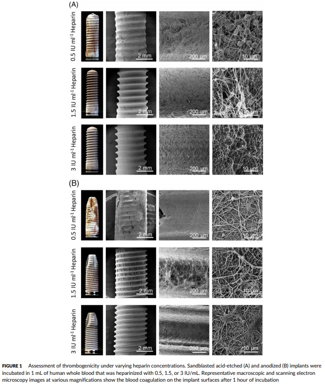 KEYWORDS: coagulation, dental implant, fibrin coverage, platelet activation, surface properties, thrombogenicity