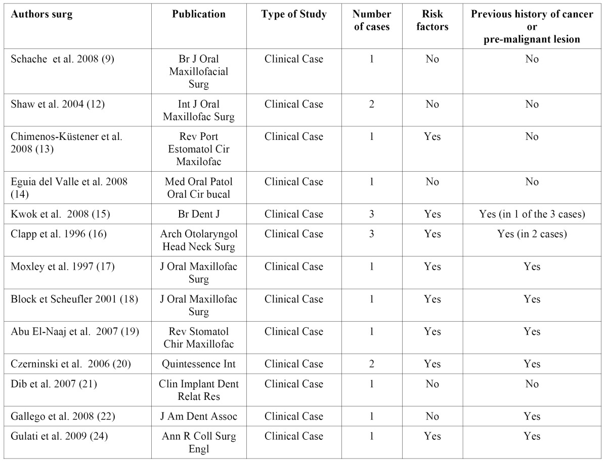 Relationship between oral cancer and implants: clinical cases and systematic literature review