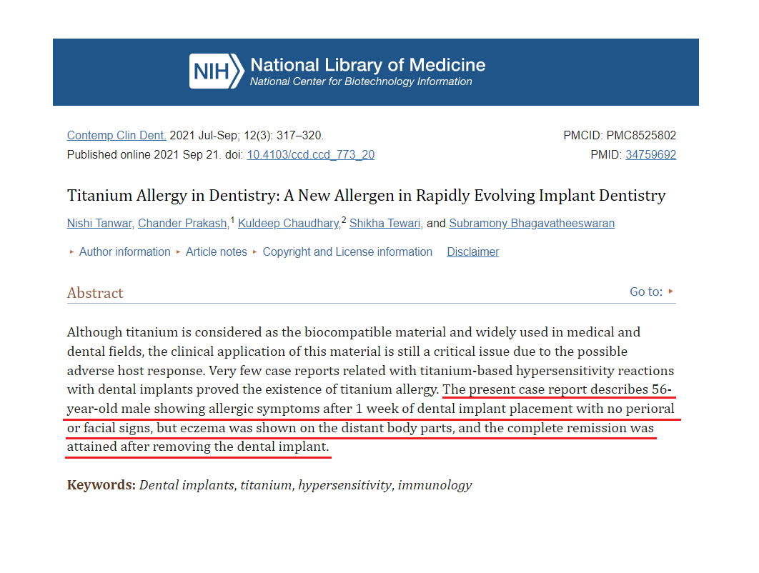 Keywords: Dental implantstitaniumhypersensitivityimmunology
