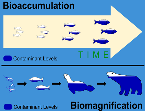 A Bio-acumulação é o processo no qual os organismos podem adquirir contaminantes mais rapidamente do que seus corpos podem eliminá-los.