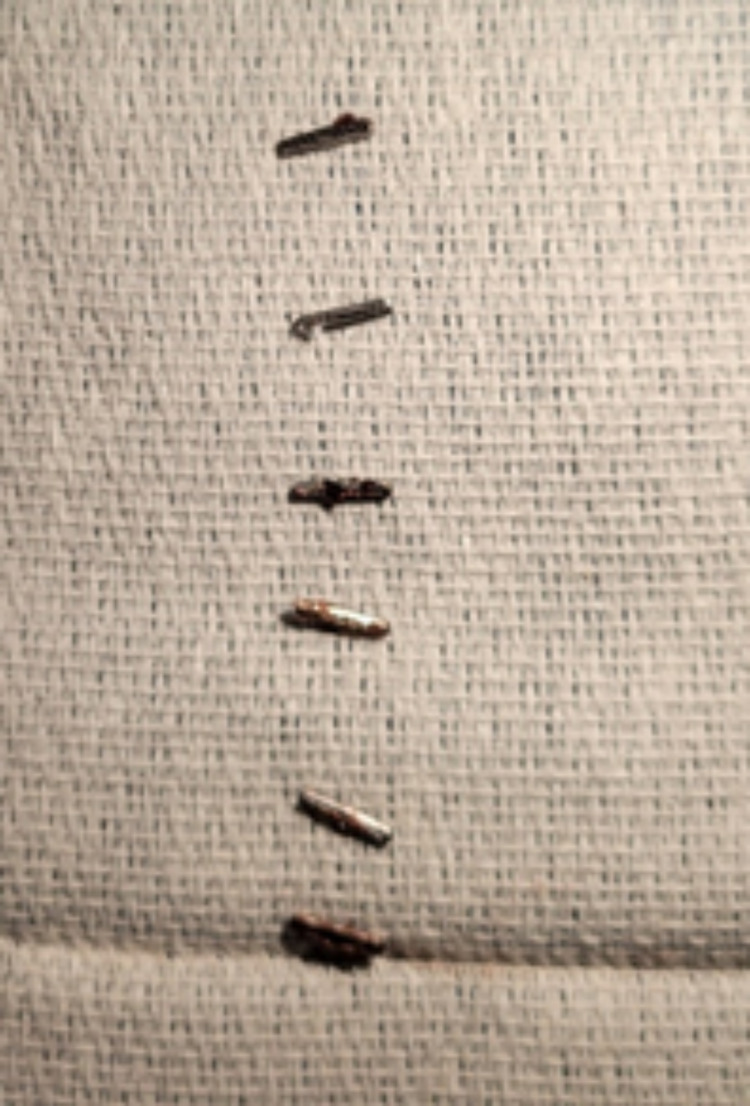 The surgical pathology report specified “foreign body” and consists of six metallic surgical clips, each measuring 1.0 cm in length and 0.1 cm in diameter (Figure2).