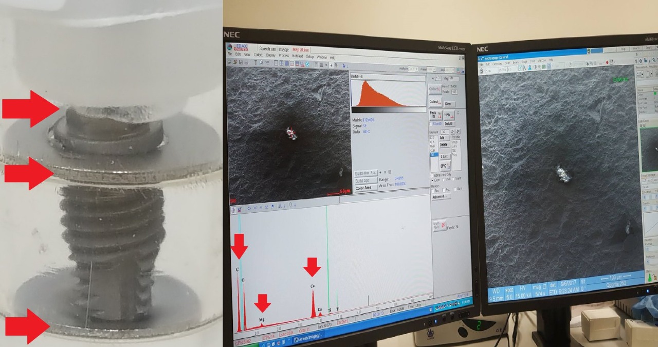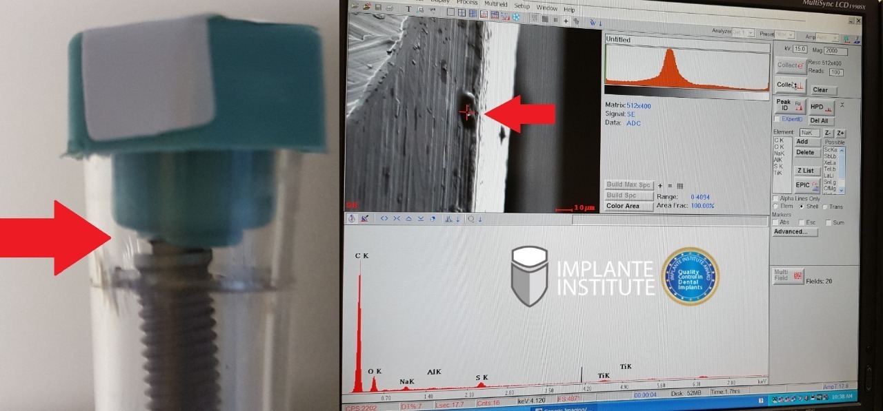 O plástico da embalagem geralmente contamina 30% dos implantes ao sofrer Quebra por Estresse Ambiental (ESC) se tornando a contaminação mais frequente do implante.