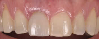 Após dois dias de uso do antibiótico, antes da cirurgia, a fístula havia regredido (Figura 2). O acesso cirúrgico foi feito através de uma incisão na linha mucogengival (Figura 3).