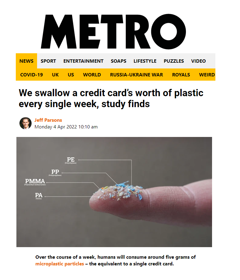 Link: https://metro.co.uk/2022/04/04/people-are-eating-5g-of-plastic-particles-each-week-study-says-16400731/