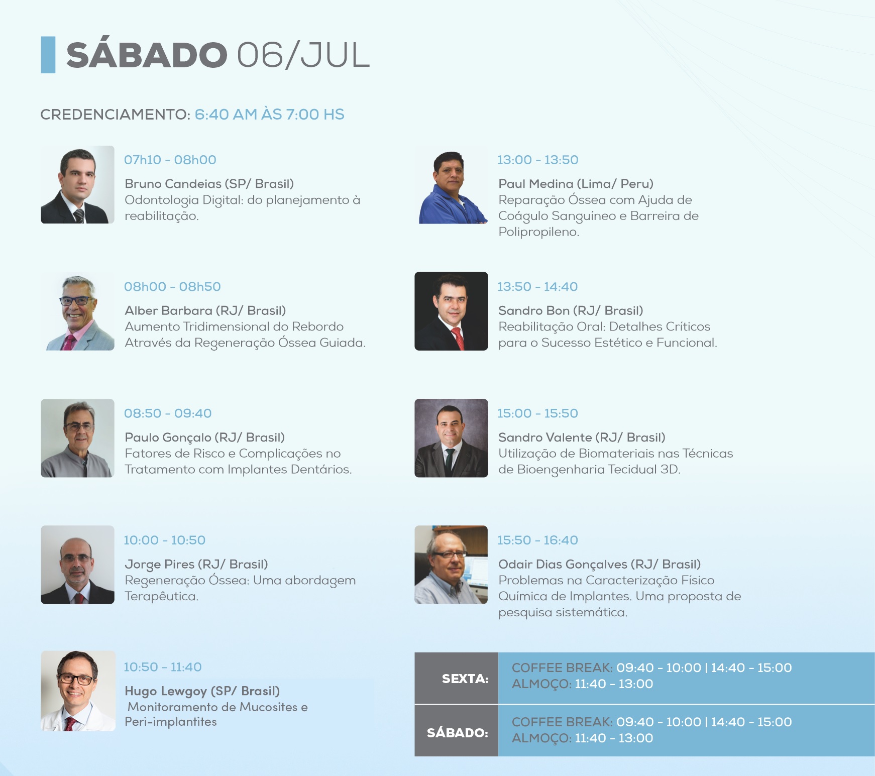 Local: Anfiteatro da Faculdade de Odontologia da UFRJ (primeiro andar) - Capacidade para 70 pessoas por dia.